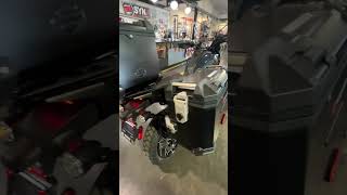• 47mm inverted fork with electronically adjustable semi-active damping control. Aluminum fork triple clamps | 47mm inverted fork with electronically adjustable semi-active damping control and Adaptive Ride Height (ARH). Aluminum fork triple clamps